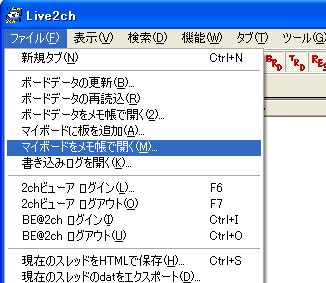 ファイルメニューから「マイボードをメモ帳で開く」を選択してください。