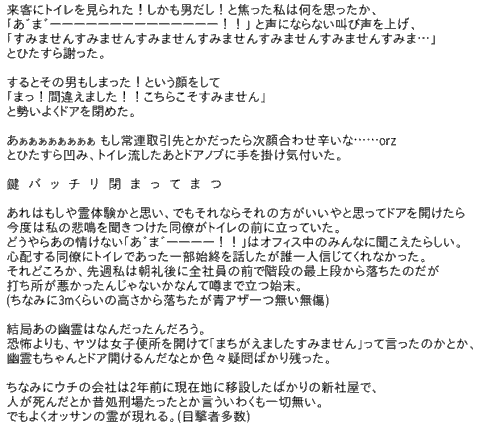 626:会社女子トイレにて2 2009/05/23(土) 12:22:55 ID:zBifLRUs0