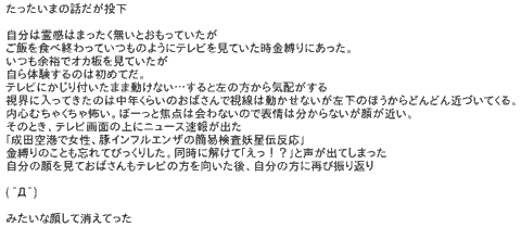89:本当にあった怖い名無し 2009/04/30(木) 22:18:18 ID:g+ipPb3HO