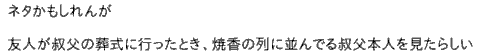 199:本当にあった怖い名無し 2010/12/02(木) 04:16:53 ID:pMzQDUjfO